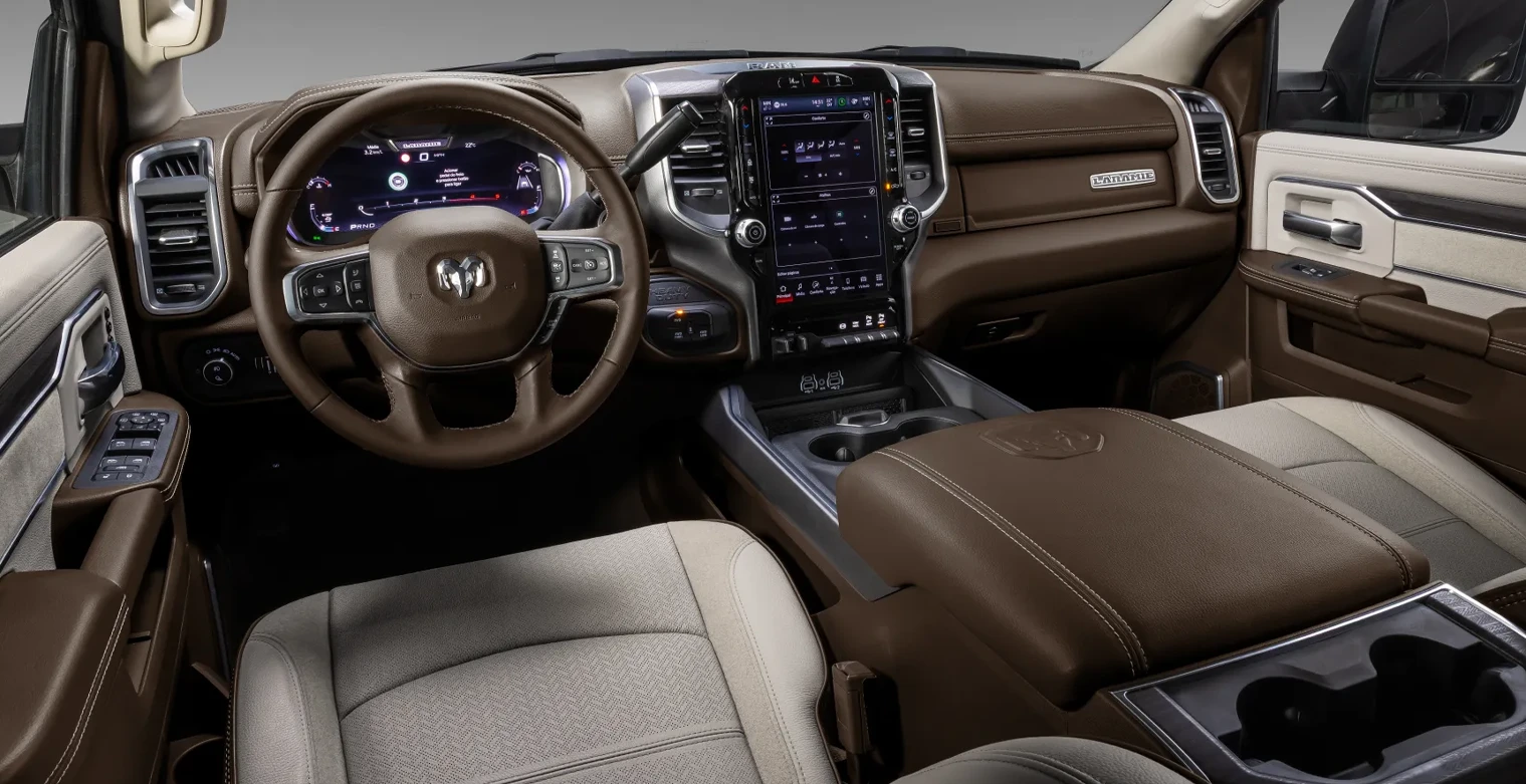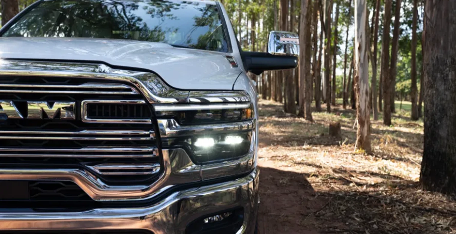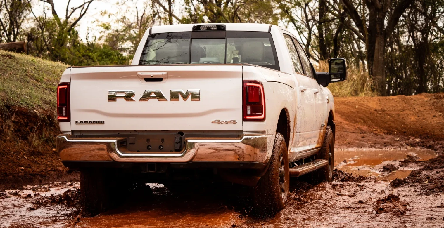 • Badges "LARAMIE", "RAM" e "4X4" na tampa da caçamba