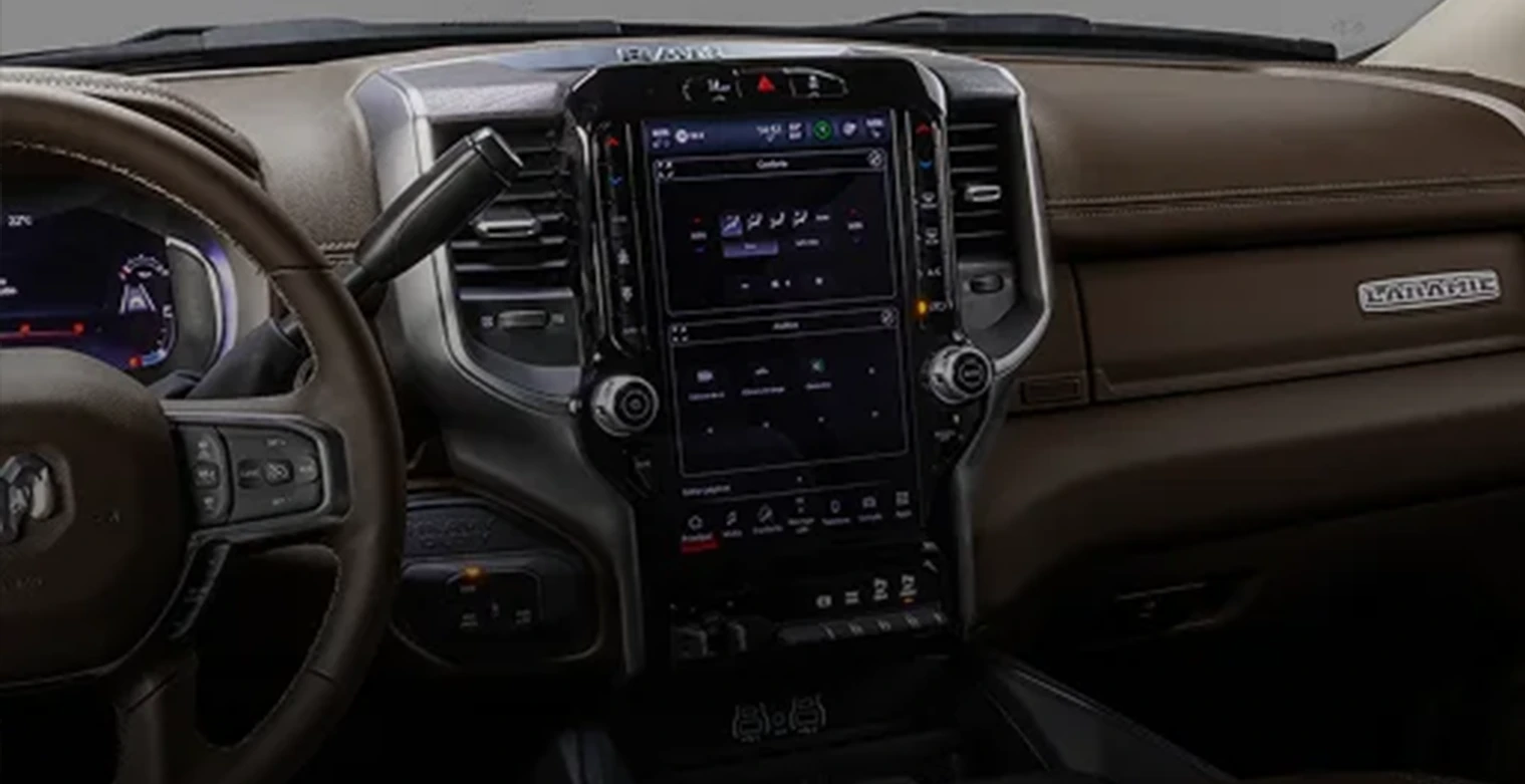• Sistema de multimídia Uconnect de 12" com tela sensível ao toque, Apple Carplay e Android Auto com conexão sem fio